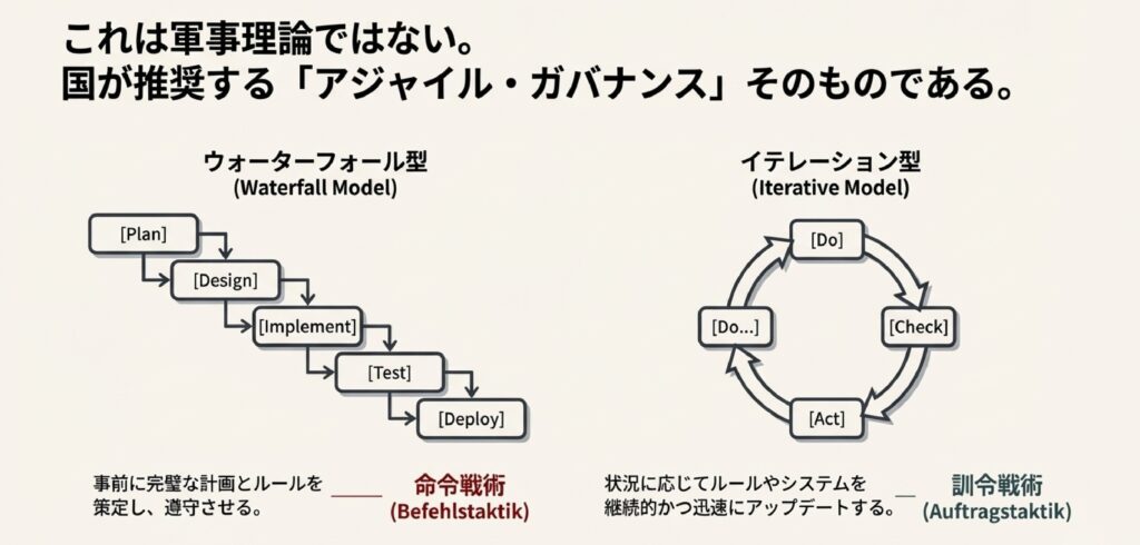 一方、現場にとって、この言葉は「言い訳」ではなく「責任の受容」を意味する。「計画がダメだから失敗した」と嘆くのではなく、計画が崩れたその瞬間からこそが本当の仕事であると認識し、上位機関の意図(Intent)を汲み取りながら、自らの知恵(Phronesis)で最適解を導き出す覚悟が求められる。これこそが「訓令戦術」が現場に求める規律あるイニシアティブ(Disciplined Initiative)である。