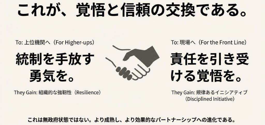 その代償として彼らが得るものは、現場のアジリティ(敏捷性)と、想定外の危機に対する組織的な強靭性(Resilience)である。